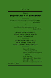 The Cox case brings the contributory liability question back before the Supreme Court for the first time since Grokster. That makes it an ideal opportunity for the Court to straighten out some of the confusion, but there is always the danger that a generalist, textualist court could instead make things worse. (See, e.g., Star Athletica v. Varsity Brands.) Doing my bit to try to avoid that result is part of the reason I spent the 100-plus hours to submit an amicus brief in this case, but not the entire reason. After all, the court gets dozens of amicus briefs in a case like this, so the marginal impact of an additional brief is near zero. (One oddity of the Supreme Court rules is that every brief, even a pro se amicus brief, is required to be filed by a “counsel of record.” So I filed the brief as counsel to myself.)